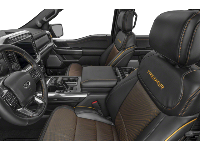 The Tremor cabin is dressed in a unique sport cloth upholstery, although a Tremor-specific leather upholstery is available. Raptor models have standard leather upholstery. However, Raptor shoppers may want the Recaro leather and alcantara suede combination. It has handsome accents in Rhapsody blue.