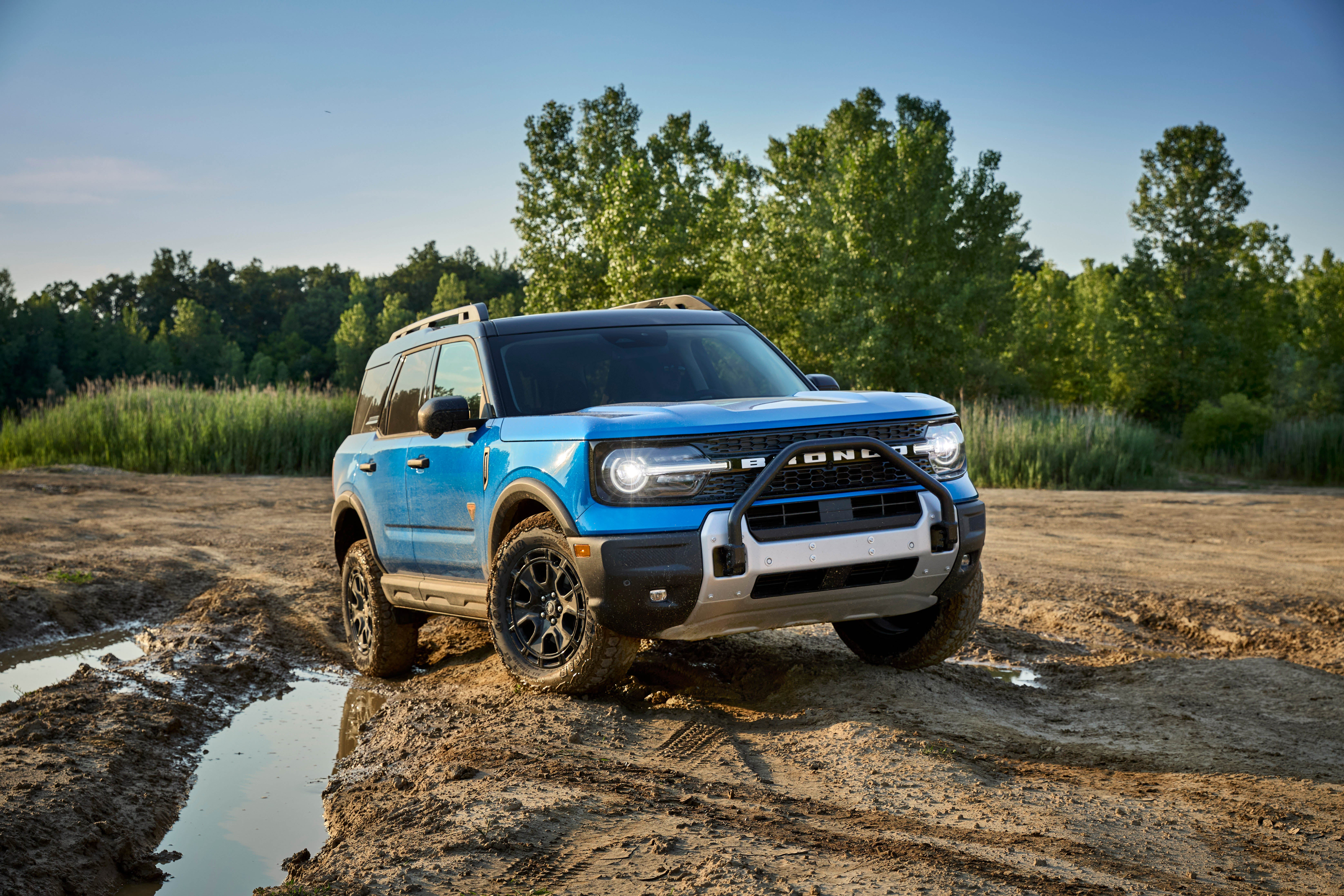 With special springs, the Bronco Sport Sasquatch gains nearly a half inch of height.Steel plates and a front brush guard help keep it secure in more situations. It’s more flexible, too, thanks to its modular bumpers that are ready for accessories. These are marked by the bucking Bronco logo.